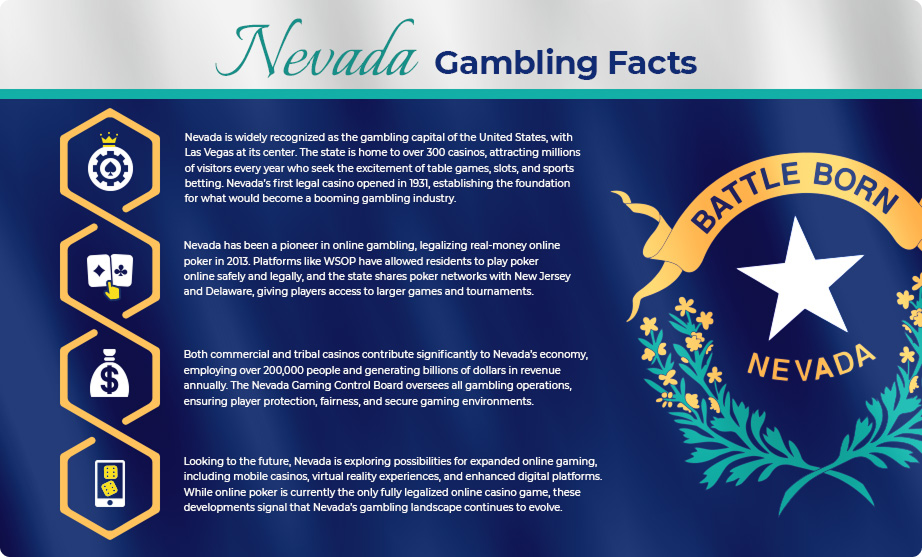 Nevada, as a leader in the gambling industry, is well-positioned for continued growth in online gaming. With online poker already thriving in the state, the future of online gambling in Nevada could involve expanding options to include online casinos, mobile platforms, and innovative technologies.