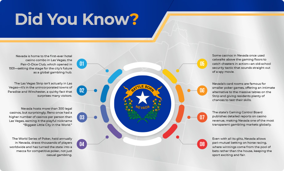 Nevada has been a pioneer in legal sports betting, offering both in-person and online wagering within state lines. Sports betting has been regulated for decades under the supervision of the Nevada Gaming Control Board (NGCB) and the Nevada Gaming Commission (NGC). Residents and visitors can legally place bets on professional and college sports through licensed operators that comply with state laws.